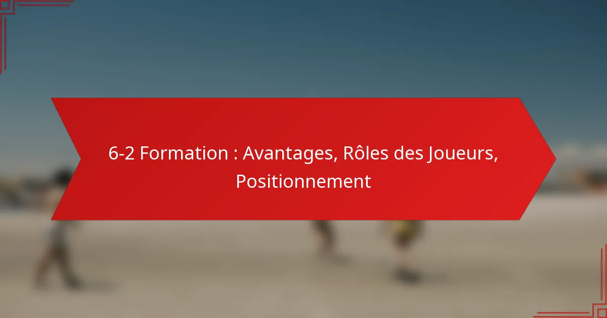 La formation 6-2 comprend six défenseurs et deux attaquants, créant une structure défensive solide tout en permettant des opportunités offensives. Chaque joueur a des rôles spécifiques qui contribuent à la fois à la défense et à l’attaque, mettant l’accent sur le travail d’équipe et la communication.