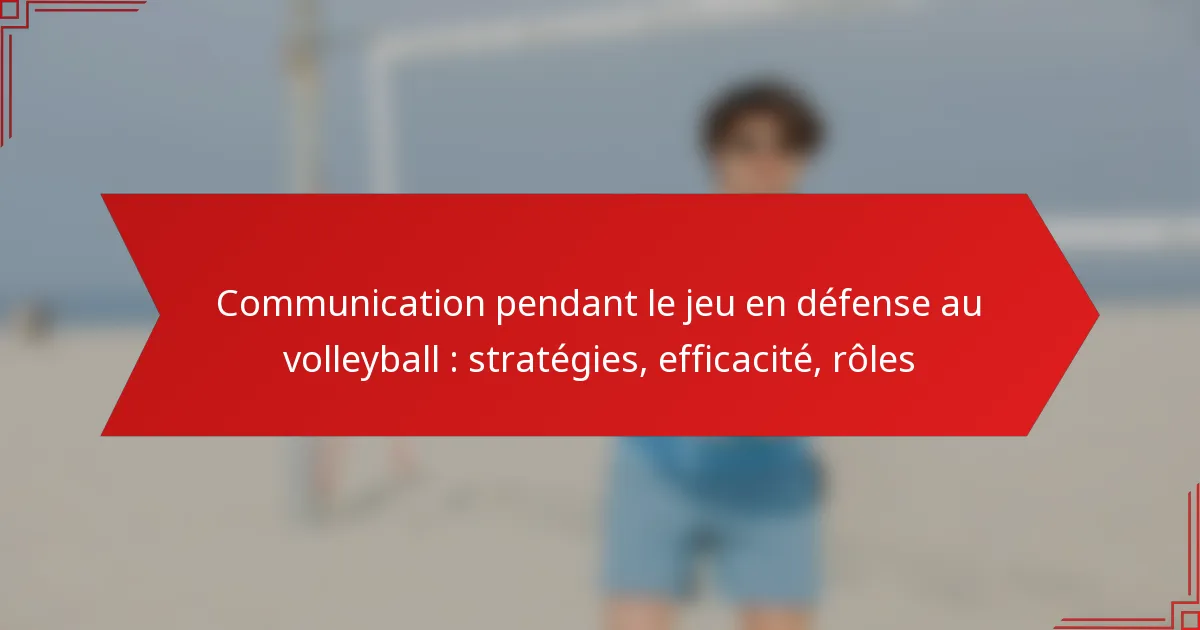 Les stratégies de communication efficaces dans la défense au volleyball sont cruciales pour améliorer la coordination de l’équipe et la performance globale. Ces stratégies englobent des indices verbaux, des signaux non verbaux et des méthodes spécifiques aux rôles qui facilitent une prise de décision rapide durant les jeux.
