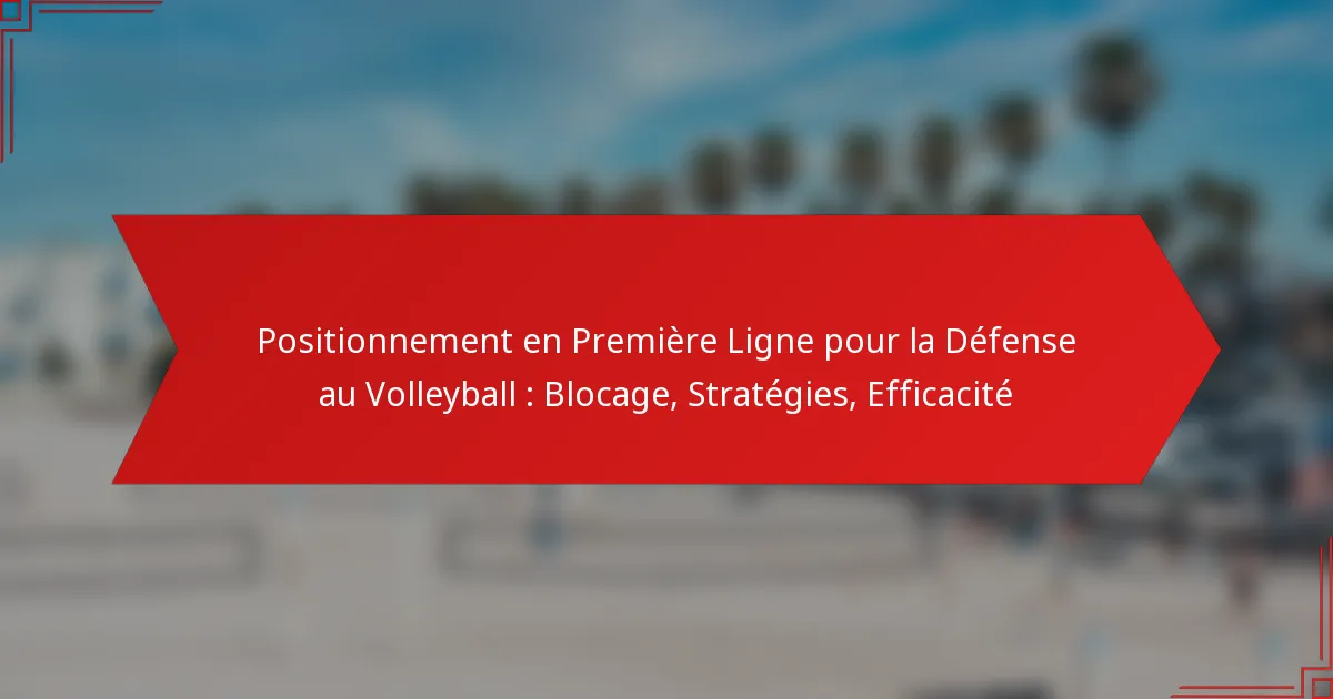 Le positionnement au premier plan en défense de volley-ball est vital pour bloquer les attaques et protéger contre les attaquants adverses, impactant directement la capacité d’une équipe à contrôler le jeu. En maîtrisant les techniques de blocage et en adoptant un positionnement stratégique, les joueurs peuvent efficacement intercepter des frappes puissantes et améliorer leur performance défensive globale. Une défense réussie au premier plan repose également sur la lecture des schémas d’attaque des adversaires et le maintien d’une communication forte avec les coéquipiers.