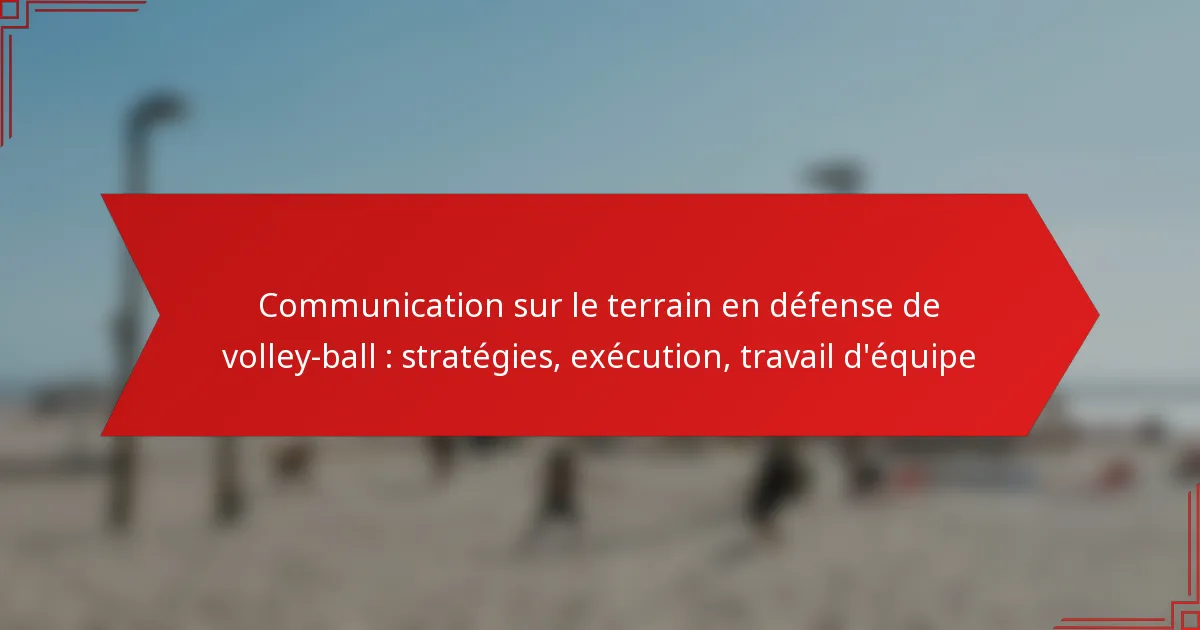 La communication sur le terrain en défense de volley-ball est essentielle pour favoriser le travail d’équipe et exécuter efficacement les stratégies pendant les matchs. En utilisant à la fois des signaux verbaux et non verbaux, les joueurs peuvent garantir la clarté de leurs rôles et responsabilités, ce qui améliore considérablement la performance défensive globale. La mise en œuvre de signaux définis et la pratique de tactiques situationnelles renforcent encore la réactivité et la cohésion de l’équipe sur le terrain.